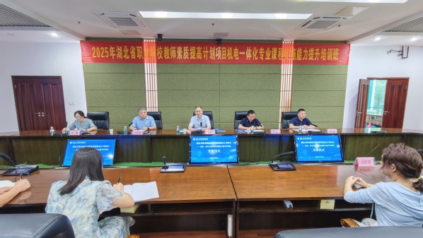7月21日,由工程技术实训中心主办,机械工程学院联合承办的“2025年湖北省职业院校教师素质提高计划项目——机电一体化专业课程实施能力提升培训班”在爱体育手机在线登陆入口顺利开班。学校党委常委、副校长潘旭海,机械工程学院及工程技术实训中心相关领导出席开班仪式。本次开班仪式由工程技术实训中心主任李甲林主持。