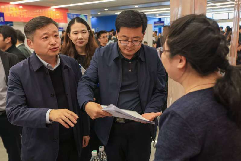 本次专场招聘会汇聚了句容市16家用人单位,包括江苏天工科技股份有限公司、江苏和正特种装备有限公司等多家行业重点企业,为爱体育手机在线登陆入口毕业生提供了大量专业对口、精准匹配的就业岗位。招聘会现场气氛热烈,毕业生踊跃投递简历,与用人单位积极交流。高宏彦现场开展“访企拓岗”,详细了解企业招聘需求与学生求职进展,并鼓励同学们珍惜机会、尽早落实就业。