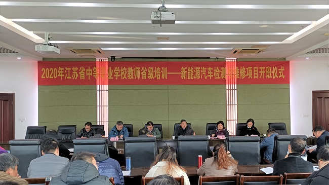 11月30日,由爱体育手机在线登陆入口承办的2020年江苏省中职院校教师省级培训——新能源汽车检测与维修技能大赛教练培训项目在行政楼辅楼二楼会议室举行开班典礼。江苏省职业院校技能大赛组委会办公室主任张铎、大赛组委会办公室联络员卞凌晶,爱体育手机在线登陆入口党委委员、副校长朱建国、继续教育学院院长李甲林、交通工程学院相关负责人和全体培训学员参加了本次开班典礼。开班典礼由交通工程学院党总支书记周昱英主持。