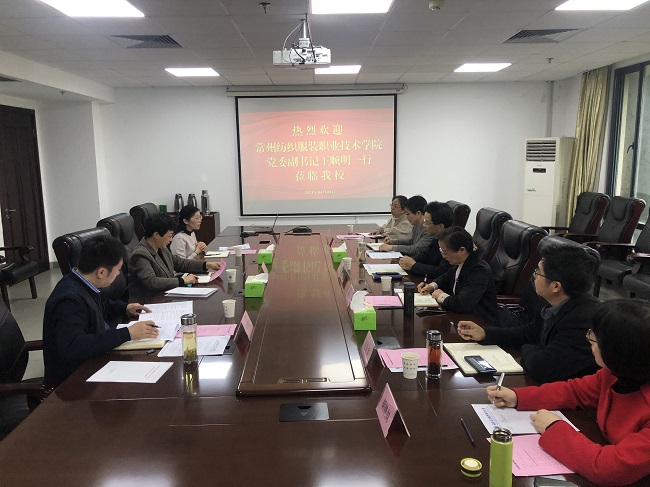 4月1日上午,常州纺织服装职业技术学院党委副书记王顺明一行来爱体育手机在线登陆入口考察调研。党委常委、副校长苏小冬,以及党委组织部、人事处等部门负责同志在行政楼317会议室接待了来宾。