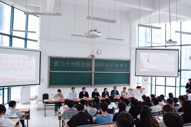 2023年4月21日,中共爱体育手机在线登陆入口委员会党校计算机与软件学院分校第三十九期培训班在乐群楼J102教室正式开班。本次开班仪式由嵌设2113班陈雨凡同学主持,学院党校、关工委、党支部、团委等负责老师及学院108名入党积极分子到场参加。